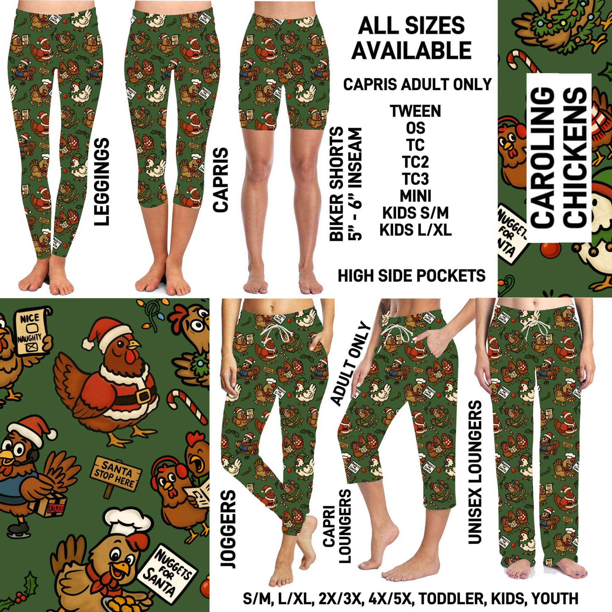 264BT - Caroling Chickens Biker/Capris/Leggings with High Side Pockets - Preorder ETA: Early Nov