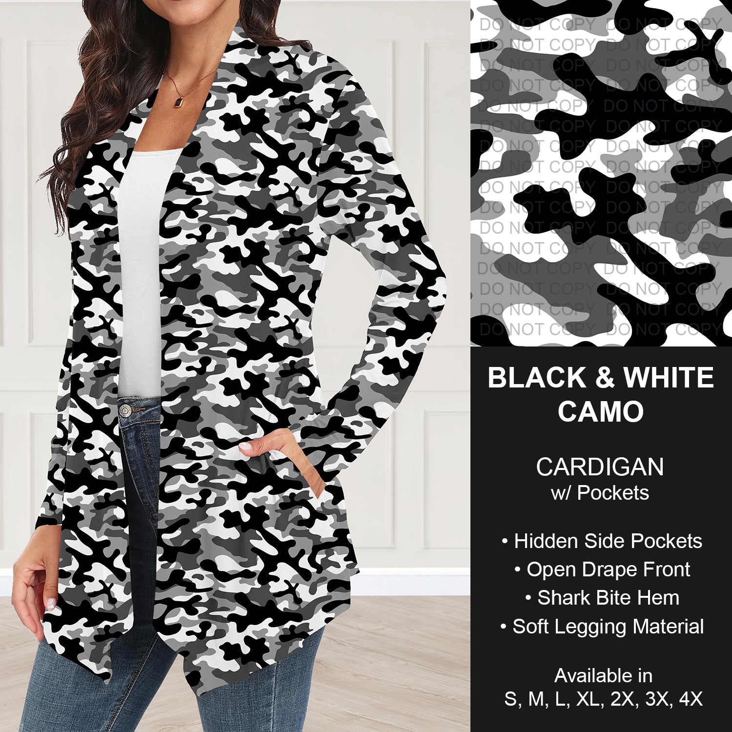 B251 - Preorder Black and White Camo Cardigan w/ Pockets (Closes 9/14. ETA: mid Nov.)