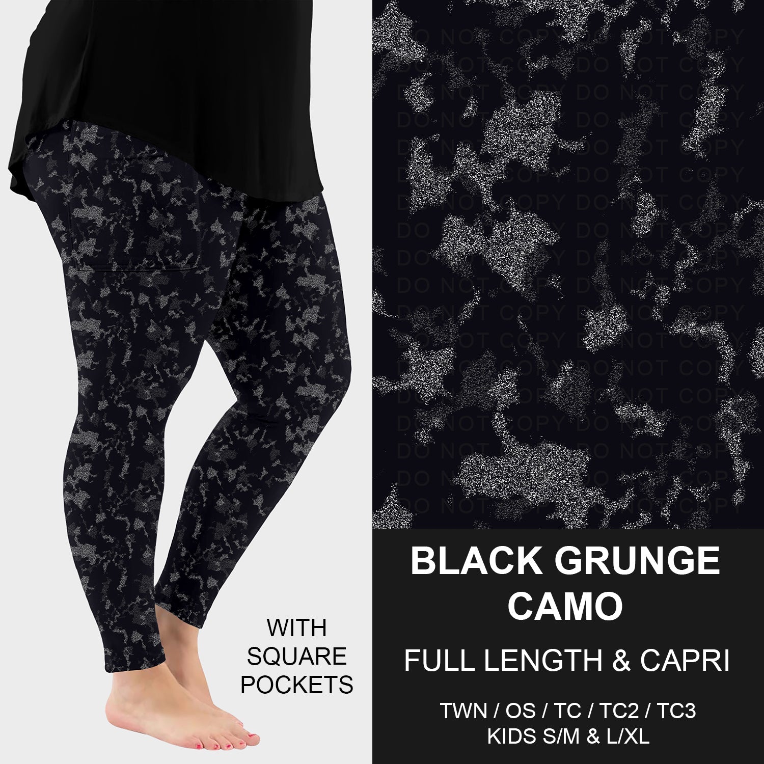 B251 - Preorder Black Grunge Camo Leggings w/ Pockets (Closes 9/14. ETA: mid Nov.)