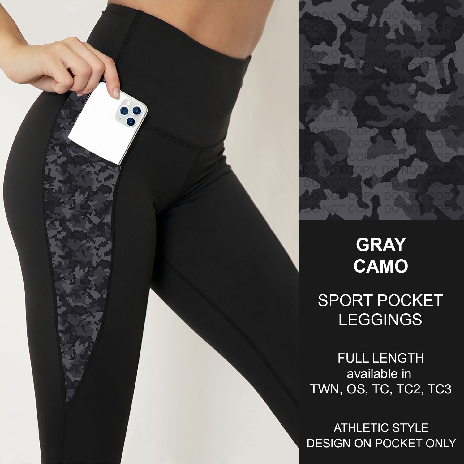 B251 - Preorder Gray Camo Sport Pocket Leggings (Closes 9/14. ETA: mid Nov.)