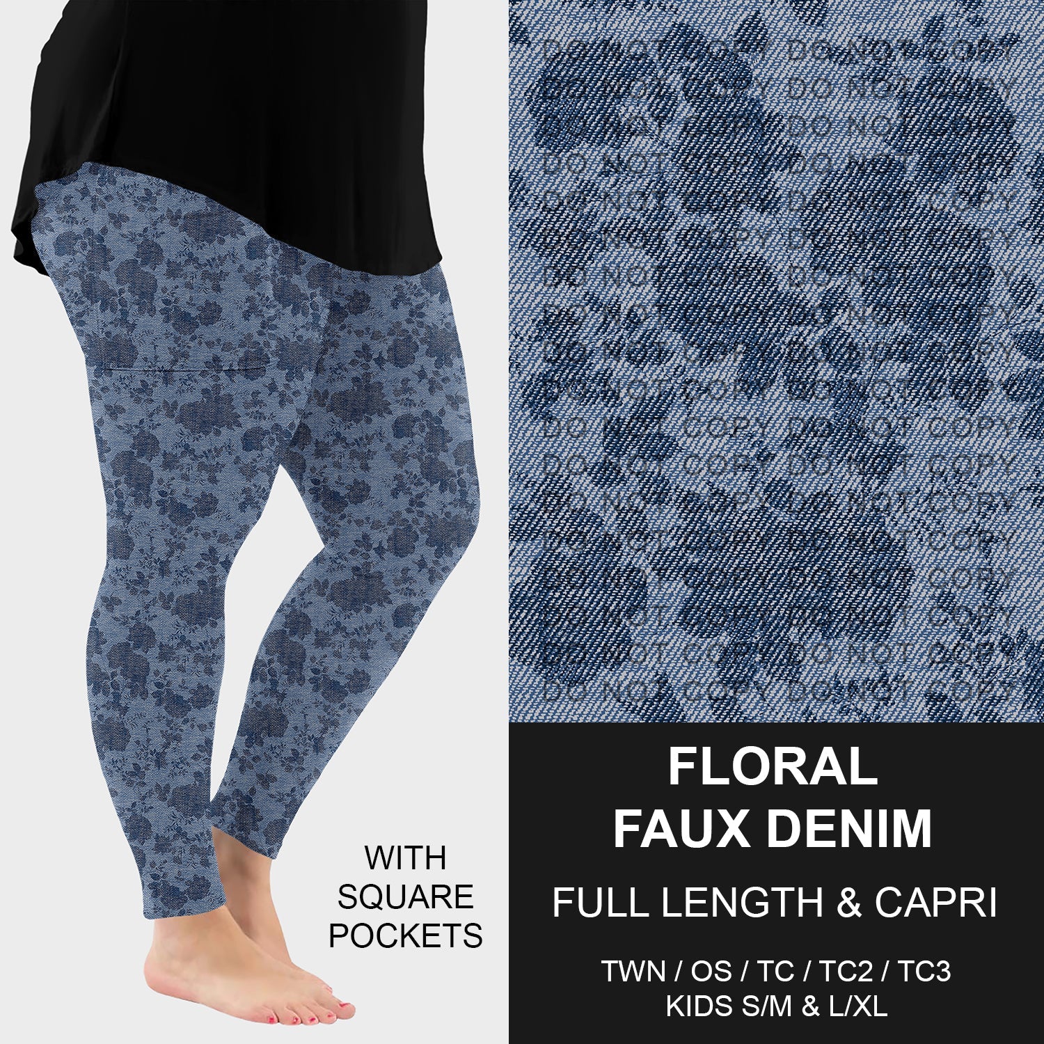 B256 - Preorder Floral Faux Denim Leggings w/ Pockets (Closes 10/19. ETA: late Dec.)