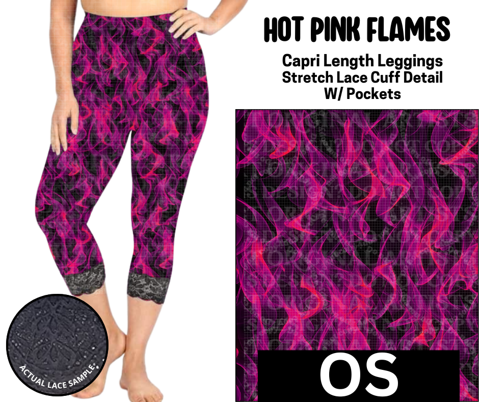 Hot Pink Flames Lace Cuff Capris w/ Pockets