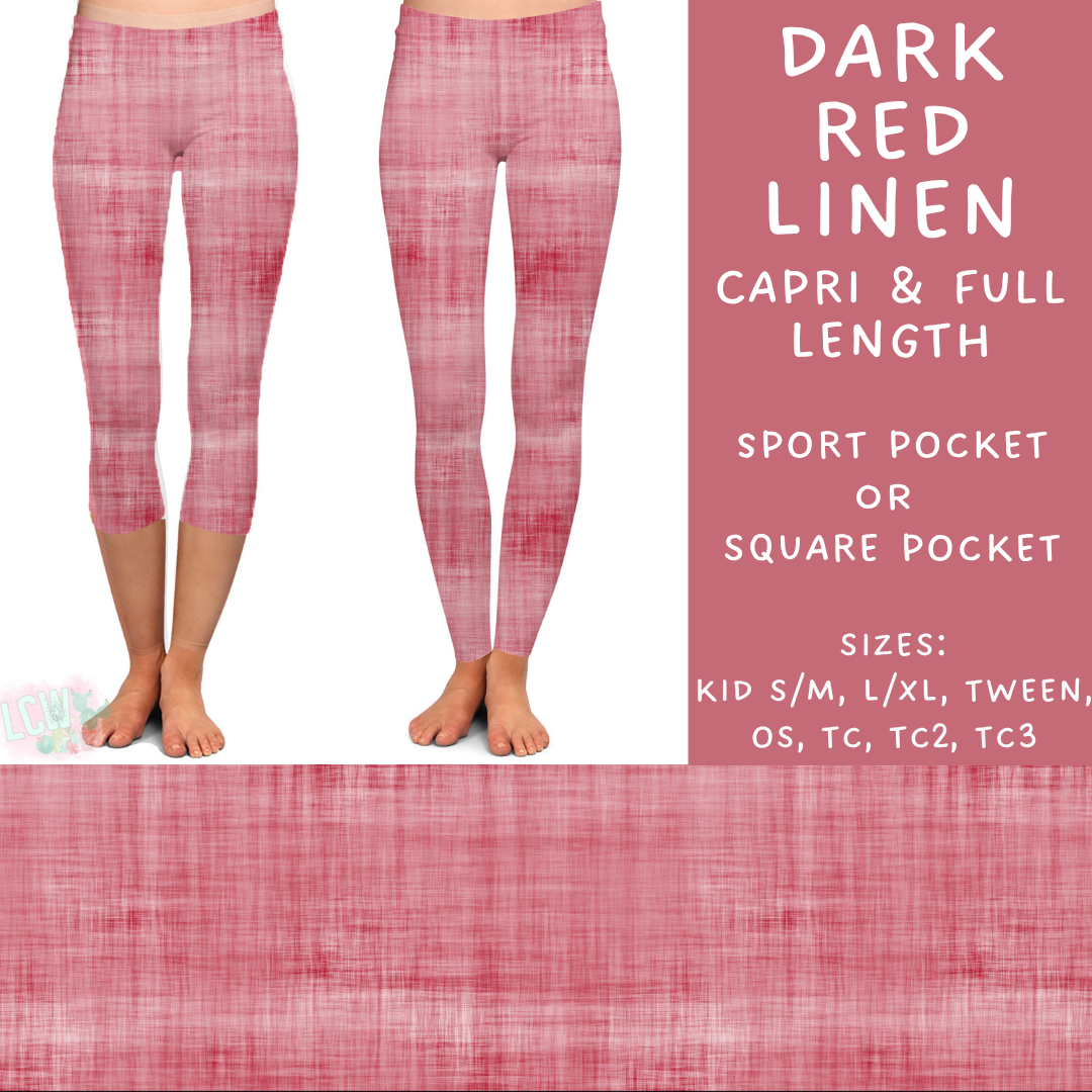 Ready To Ship - Dark Red Linen Capri Length Leggings - TC Square Pockets