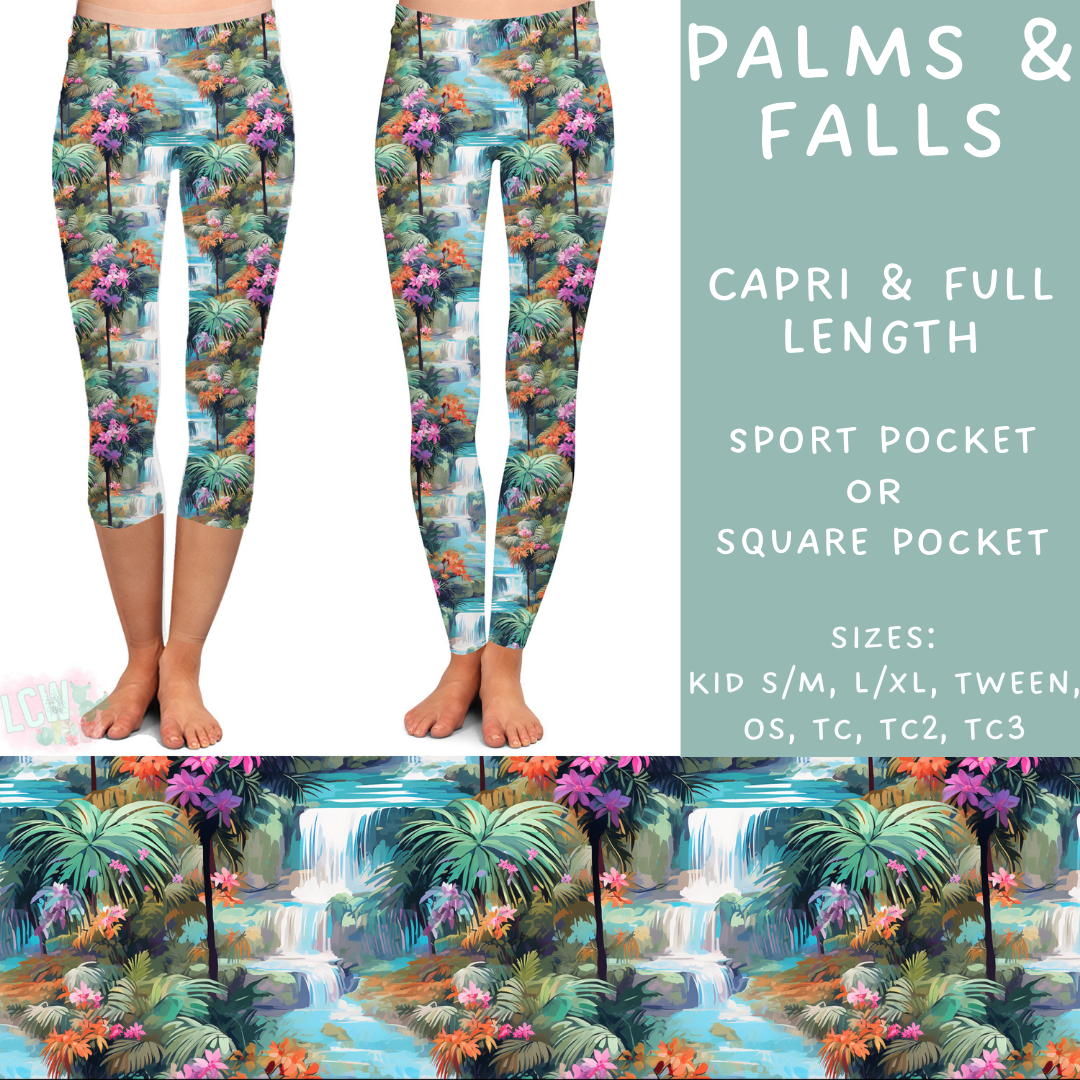 Ready To Ship - Palms & Falls Capri Length Leggings - OS Square Pocket