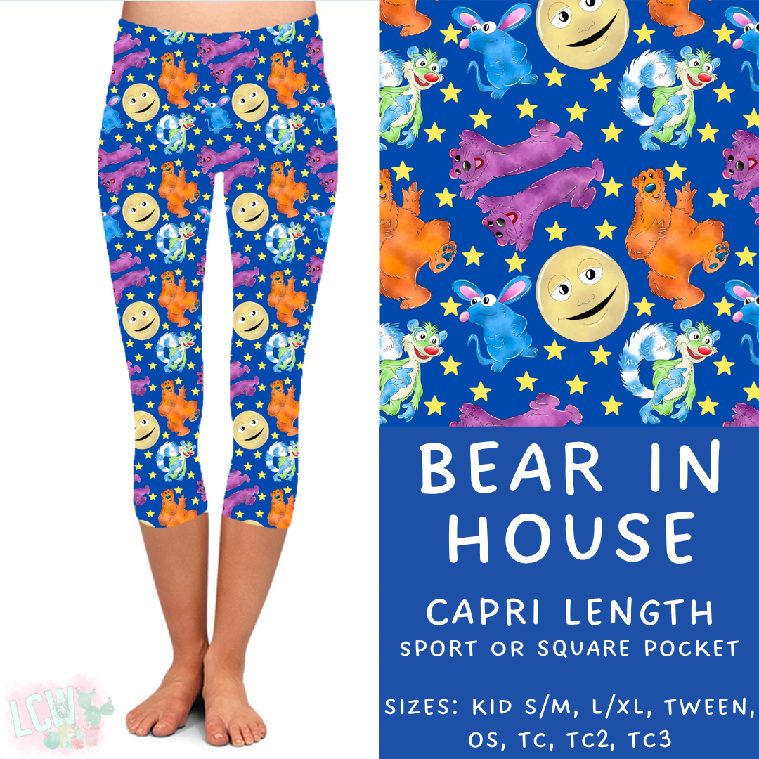 Ready To Ship - Bear in House Capri Length Leggings - TC Sport & Square Pocket