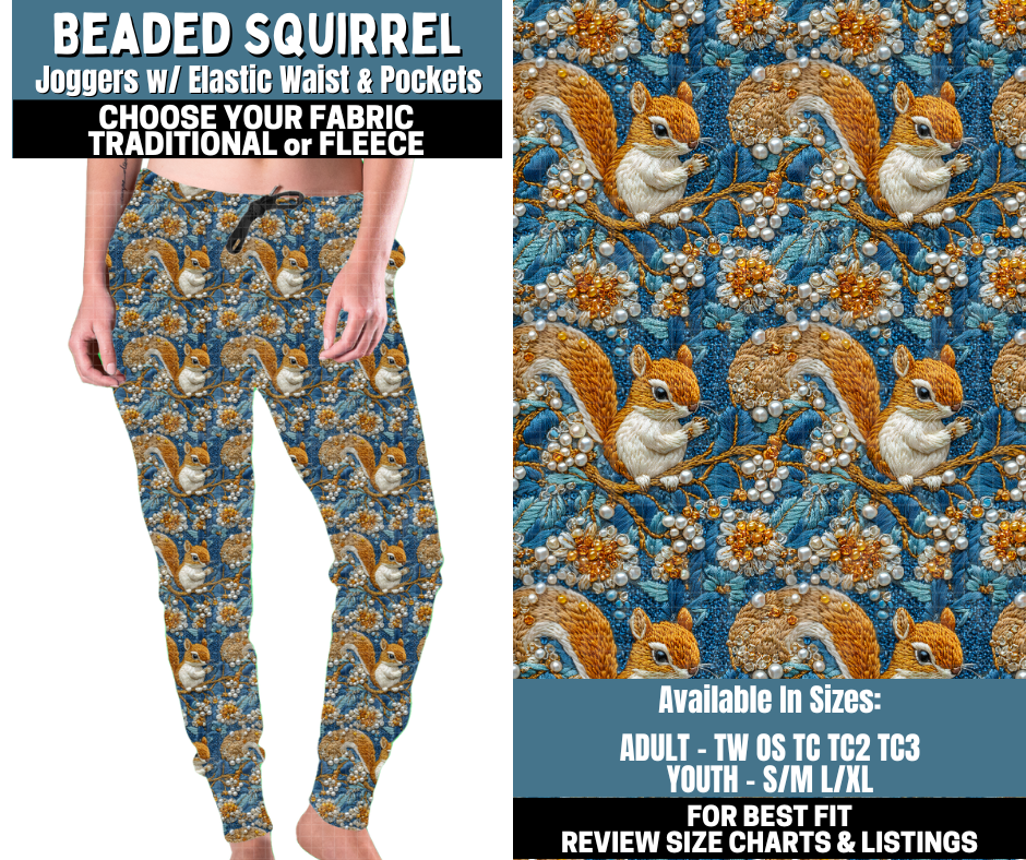 Preorder! Closes 10/13. ETA Jan. Beaded Squirrel Joggers Choose Fleece or Traditional