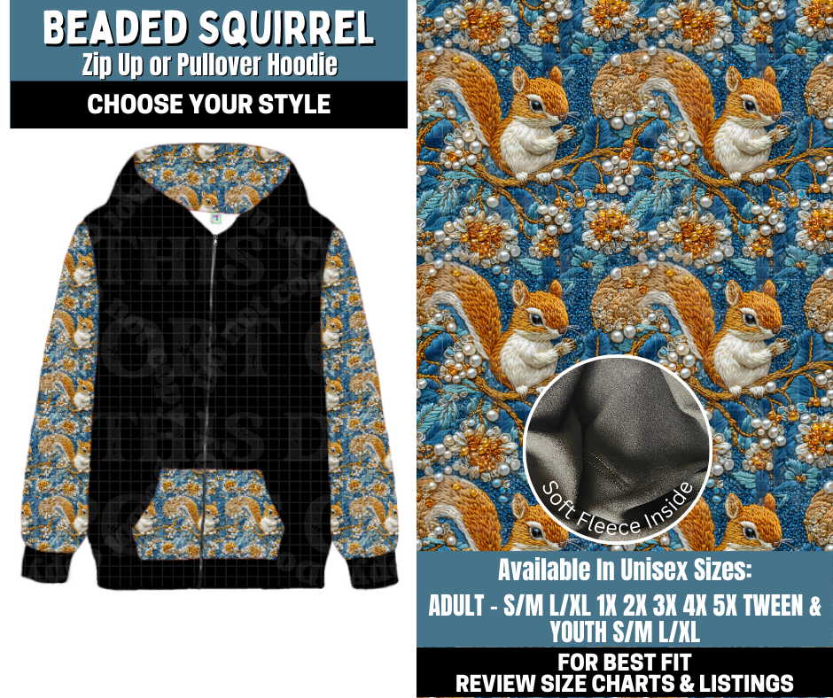 Preorder! Closes 10/13. ETA Jan. Beaded Squirrel Zip-Up or Pullover Hoodie