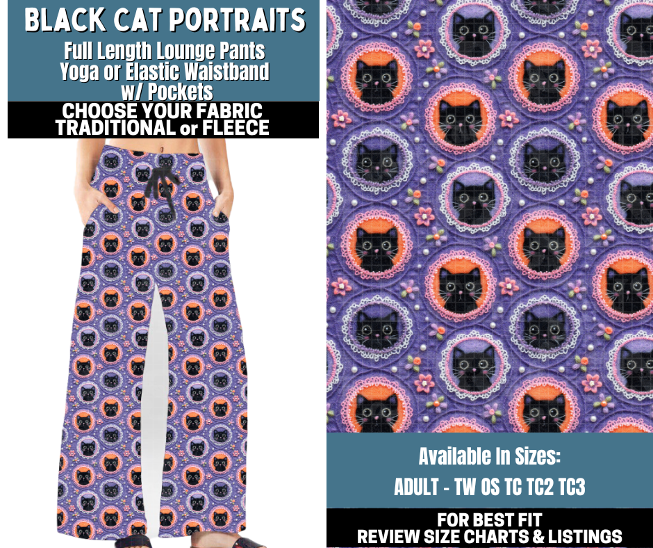 Preorder! Closes 10/13. ETA Jan. Black Cat Portraits Lounge Pants Choose Fleece or Traditional