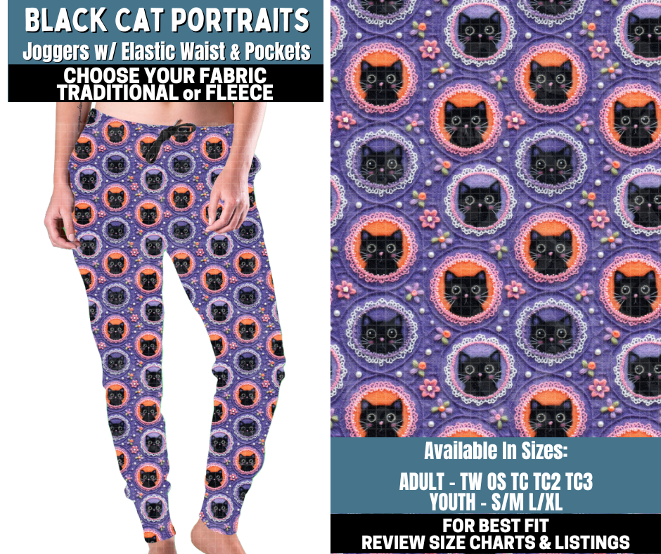 Preorder! Closes 10/13. ETA Jan. Black Cat Potraits Joggers Choose Fleece or Traditional