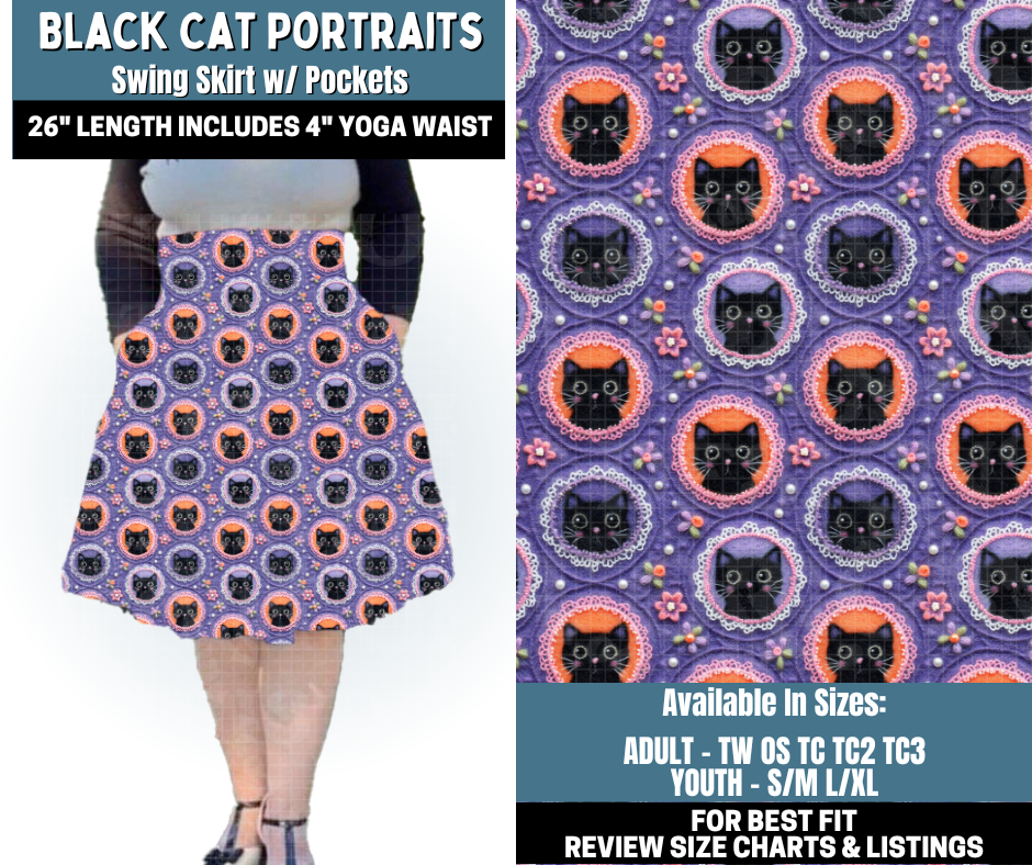 Preorder! Closes 10/13. ETA Jan. Black Cat Potraits Swing Skirt