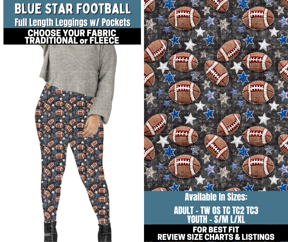 Preorder! Closes 10/13. ETA Jan. Blue Star Football Leggings Choose Fleece or Traditional
