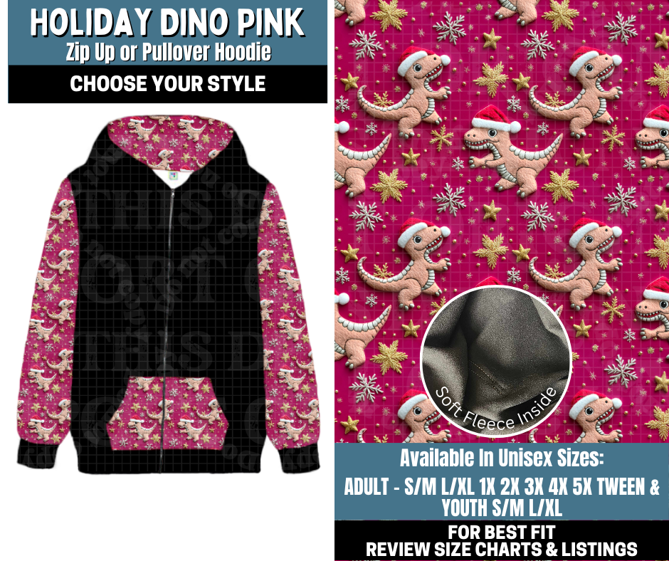 Preorder! Closes 10/13. ETA Jan. Holiday Dino Pink Zip-Up or Pullover Hoodie