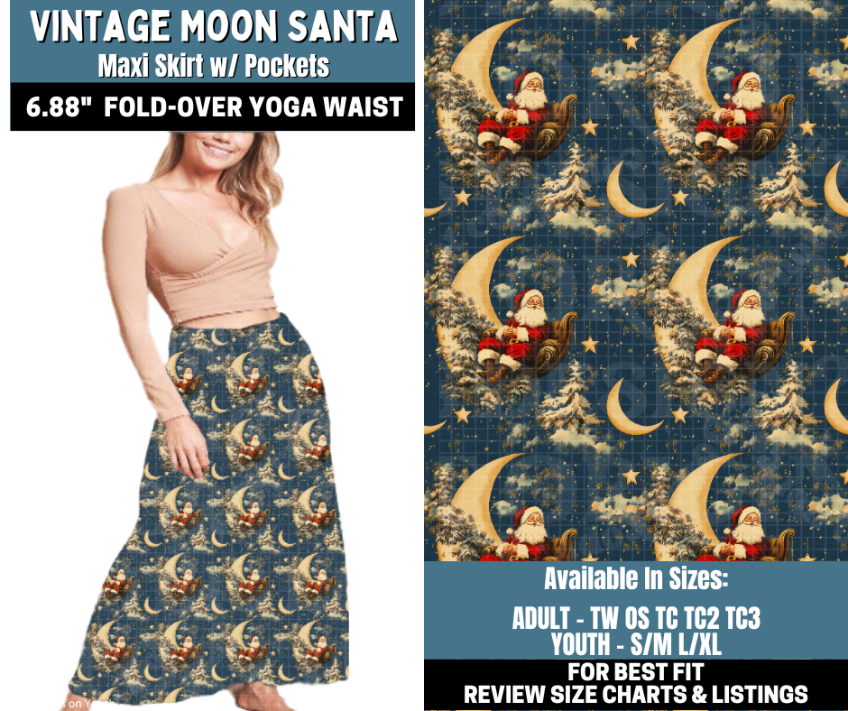 Preorder! Closes 10/13. ETA Jan. Vintage Moon Santa Maxi Skirt