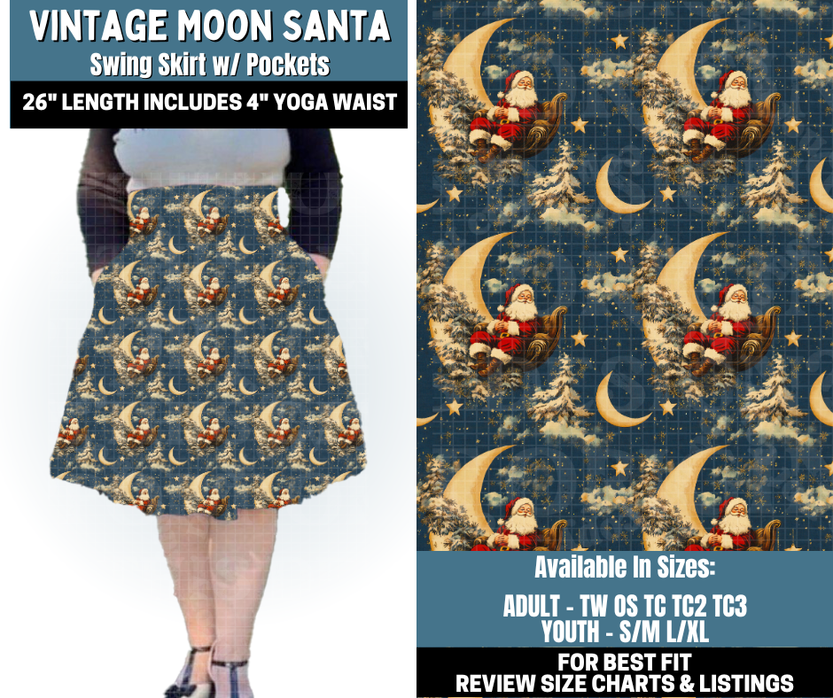 Preorder! Closes 10/13. ETA Jan. Vintage Moon Santa Swing Skirt