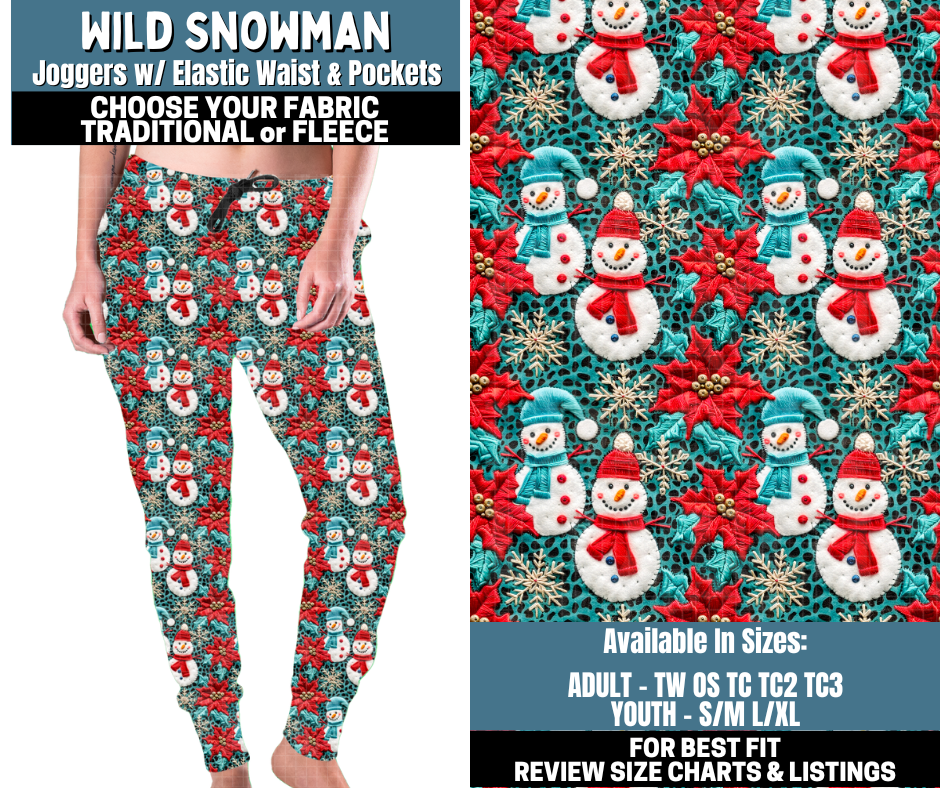 Preorder! Closes 10/13. ETA Jan. Wild Snowman Joggers Choose Fleece or Traditional