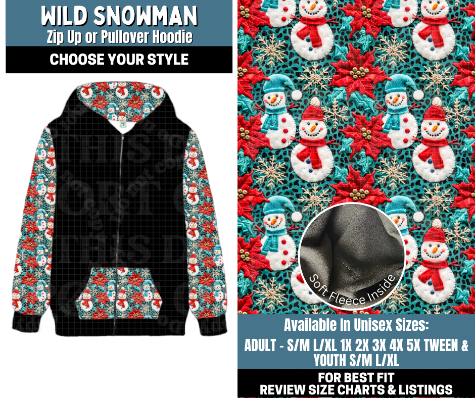 Preorder! Closes 10/13. ETA Jan. Wild Snowman Zip-Up or Pullover Hoodie