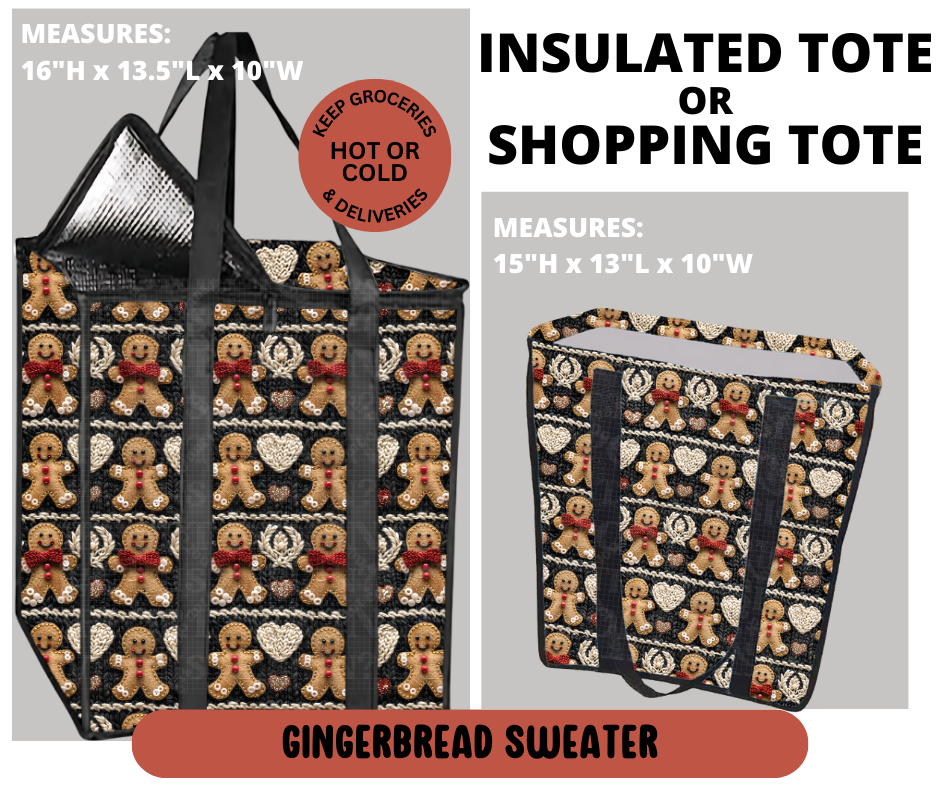 Preorder! Closes 9/11. ETA Dec. Gingerbread Sweater Shopping & Insulated Tote