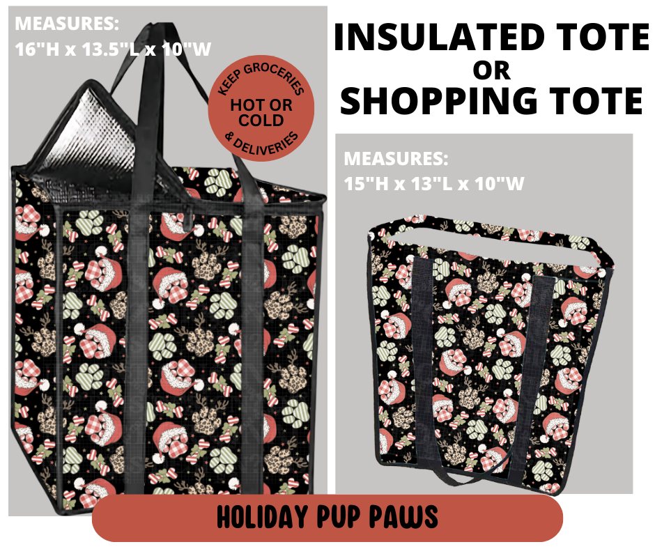 Preorder! Closes 9/11. ETA Dec. Holiday Pup Paws Shopping & Insulated Tote