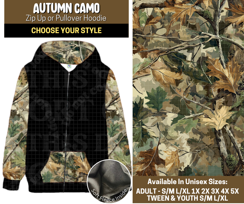 Preorder! Closes 9/12. ETA Dec. Autumn Camo Zip-Up or Pullover Hoodie