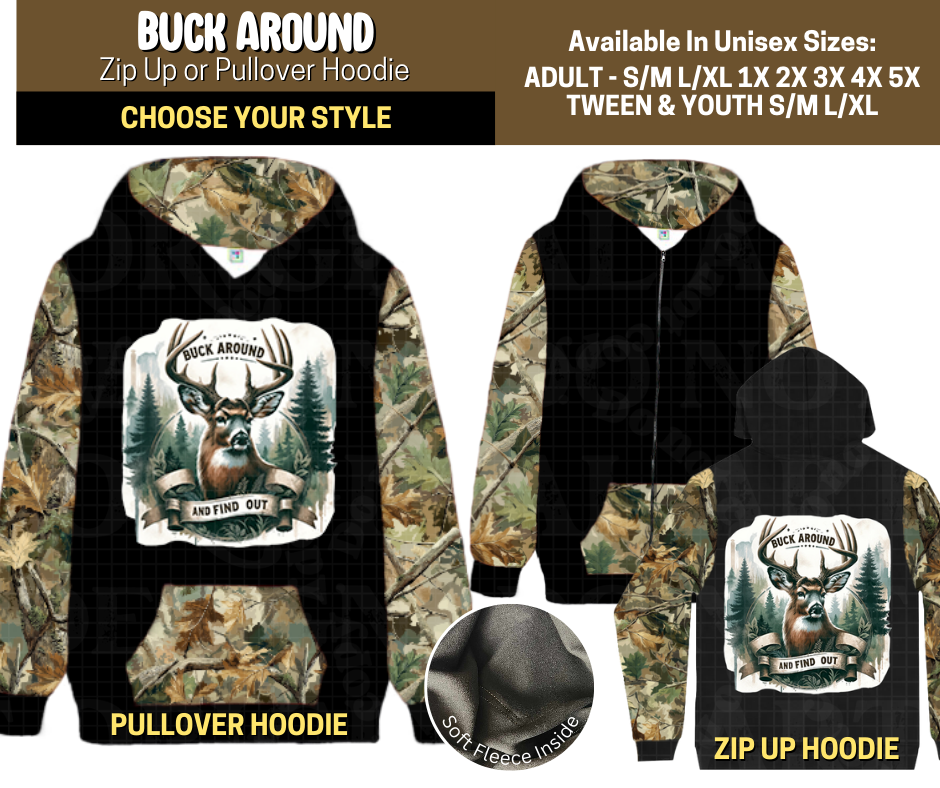 Preorder! Closes 9/12. ETA Dec. Buck Around Zip-Up or Pullover Hoodie