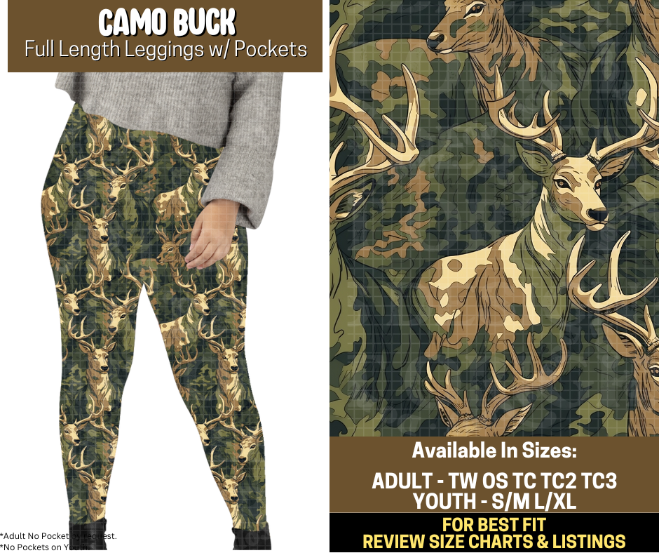 Preorder! Closes 9/12. ETA Dec. Camo Buck Full Length Leggings w/wo Pockets