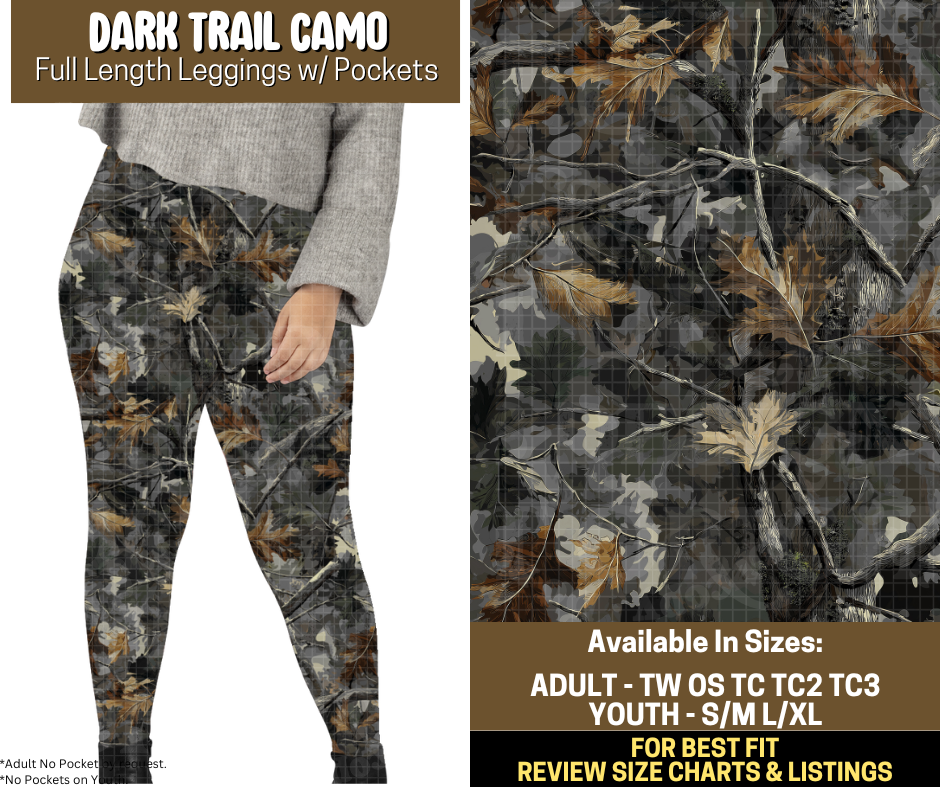 Preorder! Closes 9/12. ETA Dec. Dark Trail Camo Full Length Leggings w/wo Pockets