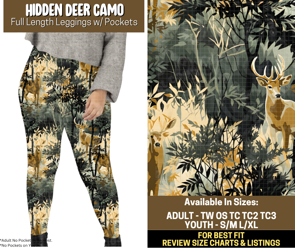 Preorder! Closes 9/12. ETA Dec. Hidden Deer Camo Full Length Leggings w/wo Pockets