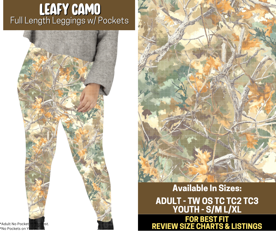 Preorder! Closes 9/12. ETA Dec. Leafy Camo Full Length Leggings w/wo Pockets