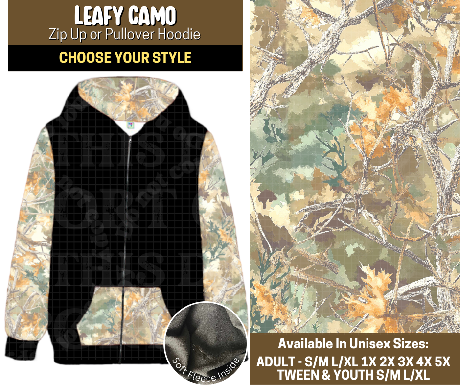 Preorder! Closes 9/12. ETA Dec. Leafy Camo Zip-Up or Pullover Hoodie