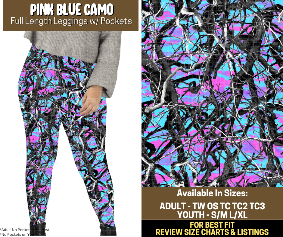Preorder! Closes 9/12. ETA Dec. Pink Blue Camo Full Length Leggings w/wo Pockets