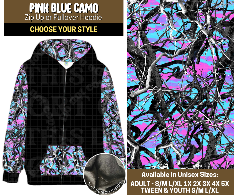 Preorder! Closes 9/12. ETA Dec. Pink Blue Camo Zip-Up or Pullover Hoodie