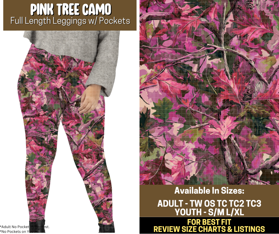 Preorder! Closes 9/12. ETA Dec. Pink Tree Camo Full Length Leggings w/wo Pockets