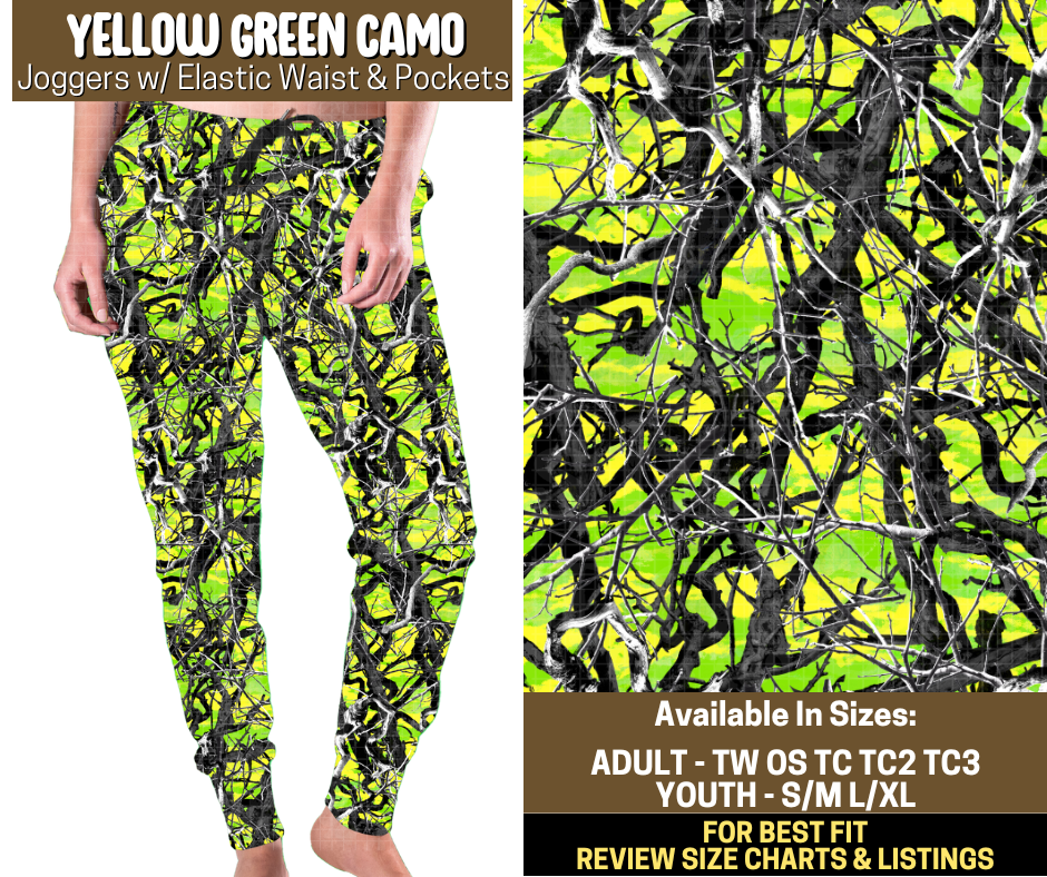Preorder! Closes 9/12. ETA Dec. Yellow Green Camo Joggers