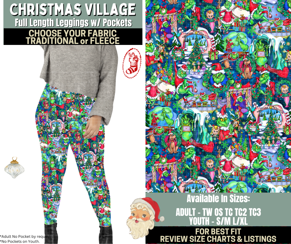 Preorder! Closes 9/15. ETA Dec. Christmas Village Leggings Choose Fleece or Traditional
