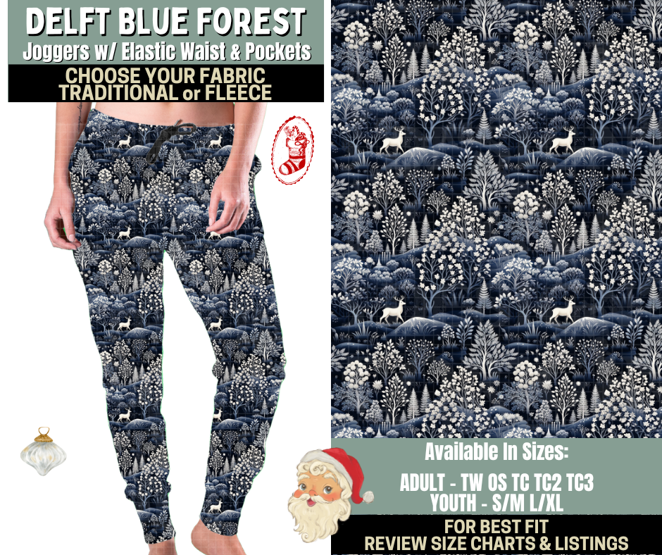Preorder! Closes 9/15. ETA Dec. Delft Blue Forest Joggers Choose Fleece or Traditional