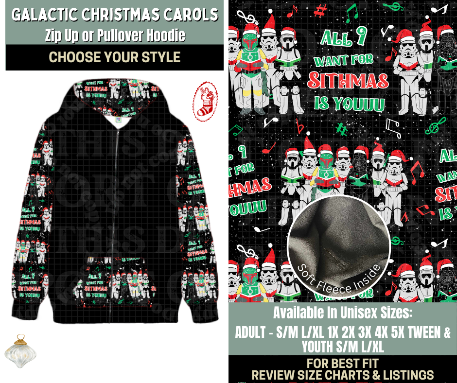 Preorder! Closes 9/15. ETA Dec. Galactic Christmas Carols Zip-Up or Pullover Hoodie