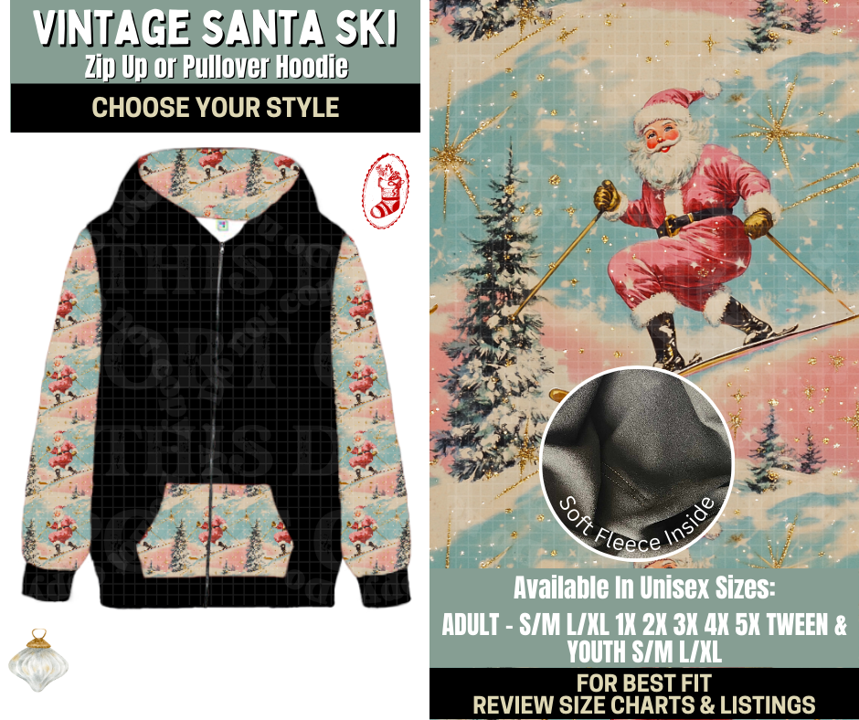 Preorder! Closes 9/15. ETA Dec. Vintage Santa Ski Zip-Up or Pullover Hoodie