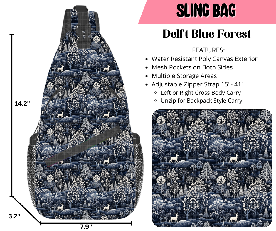 Preorder! Closes 9/17. ETA Dec. Delft Blue Forest Sling Bag