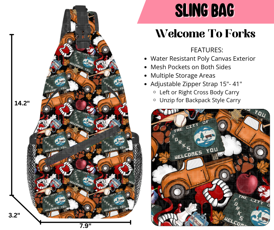 Preorder! Closes 9/17. ETA Dec. Welcome to Forks Sling Bag