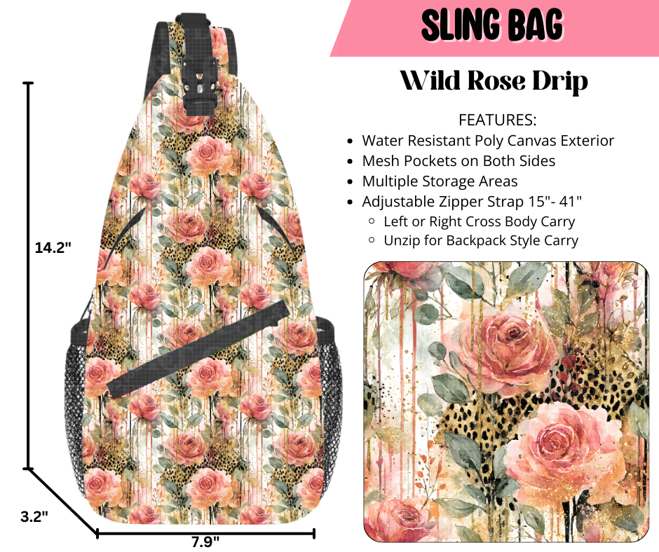 Preorder! Closes 9/17. ETA Dec. Wild Rose Drip Sling Bag