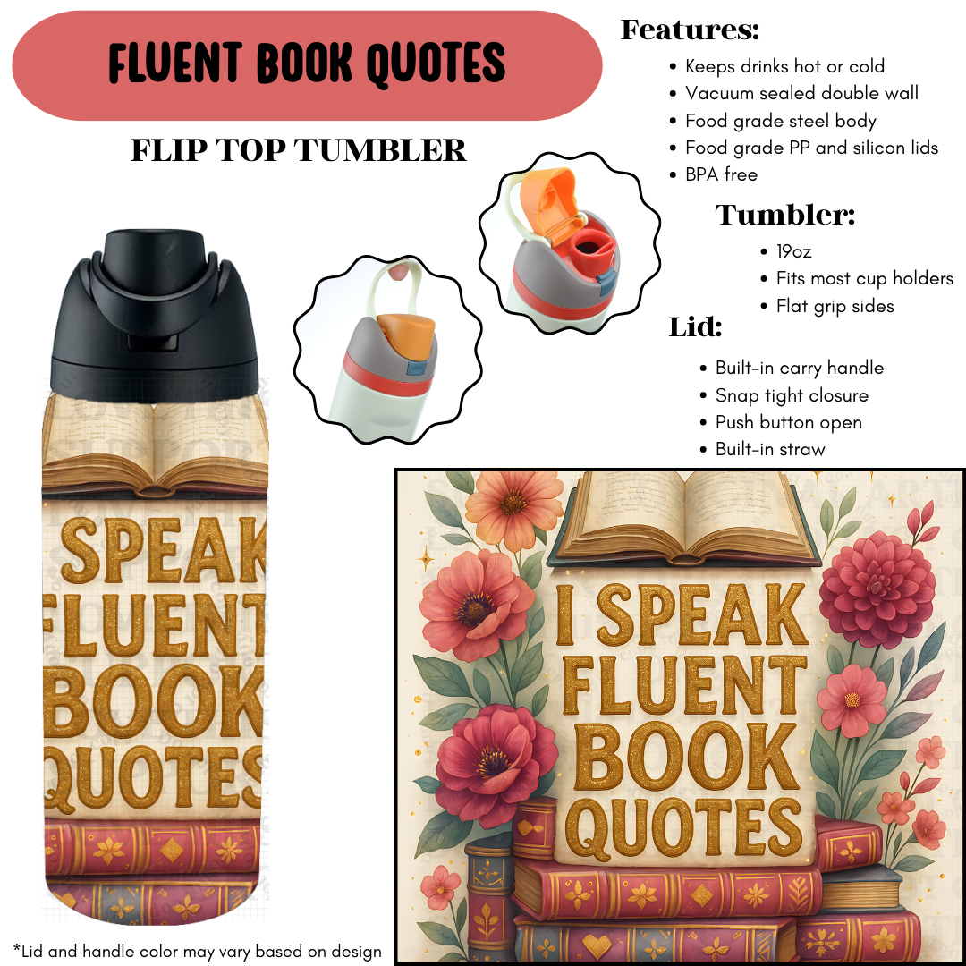 Preorder! Closes 9/18. ETA Dec. Fluent Book Quotes Flip Top Tumbler