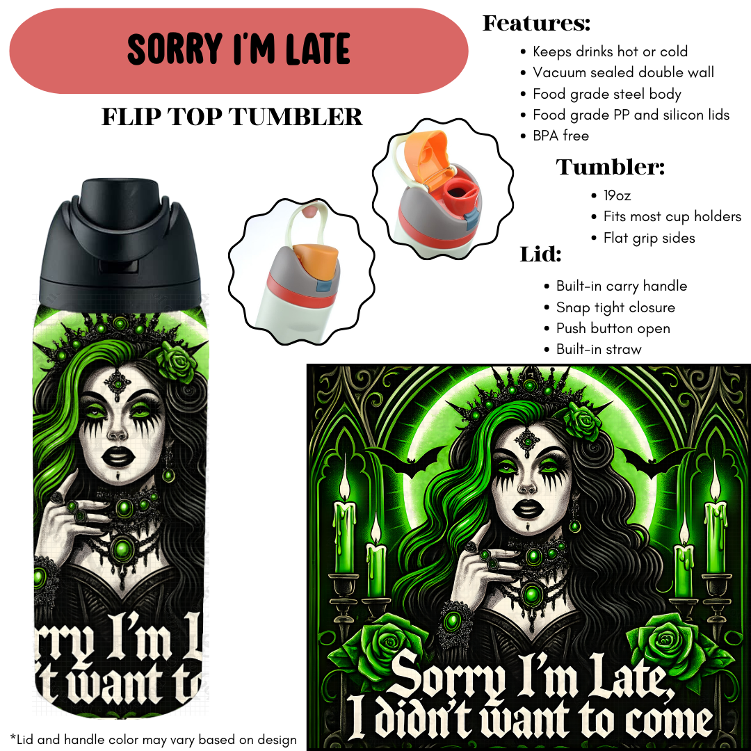 Preorder! Closes 9/18. ETA Dec. Sorry I'm Late Flip Top Tumbler