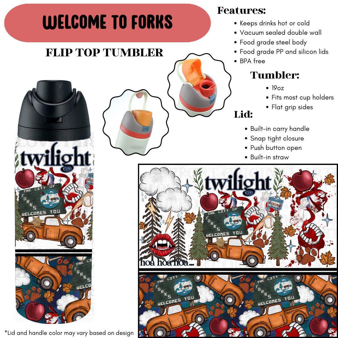 Preorder! Closes 9/18. ETA Dec. Welcome to Forks Flip Top Tumbler