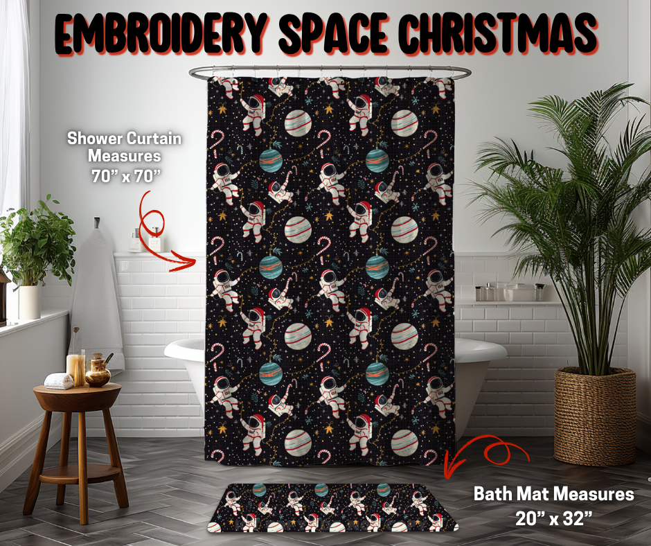 Preorder! Closes 9/8. ETA Dec. Embroidery Space Christmas Custom Shower Curtain and/or Bath Mat