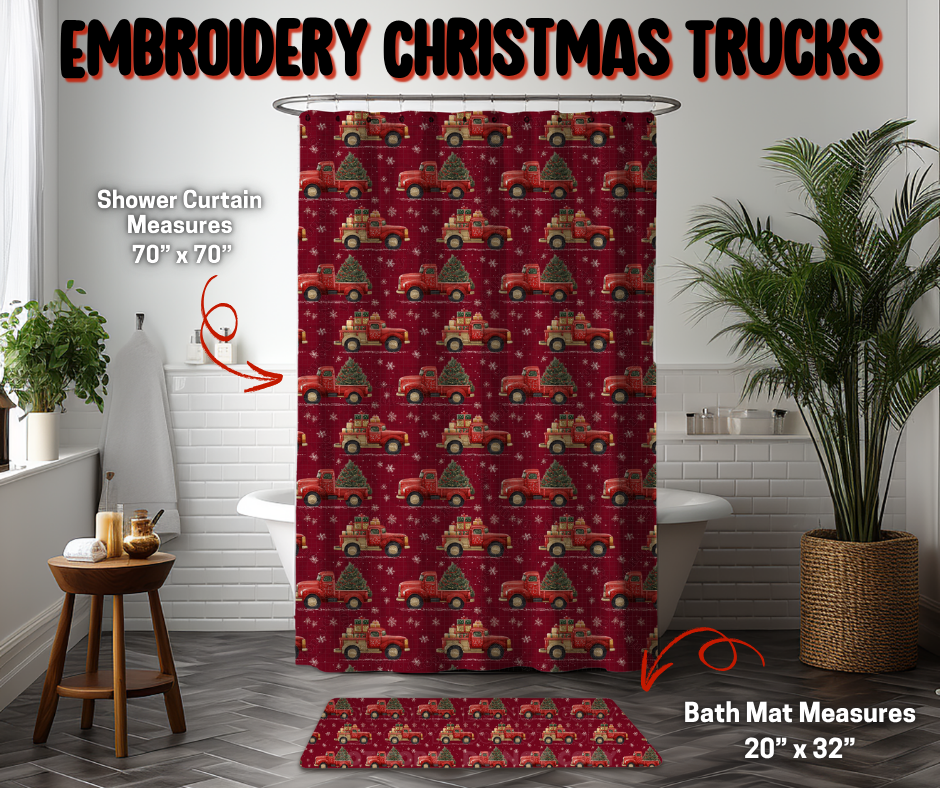 Preorder! Closes 9/8. ETA Dec. Embroidery Christmas Trucks Ornaments Custom Shower Curtain and/or Bath Mat