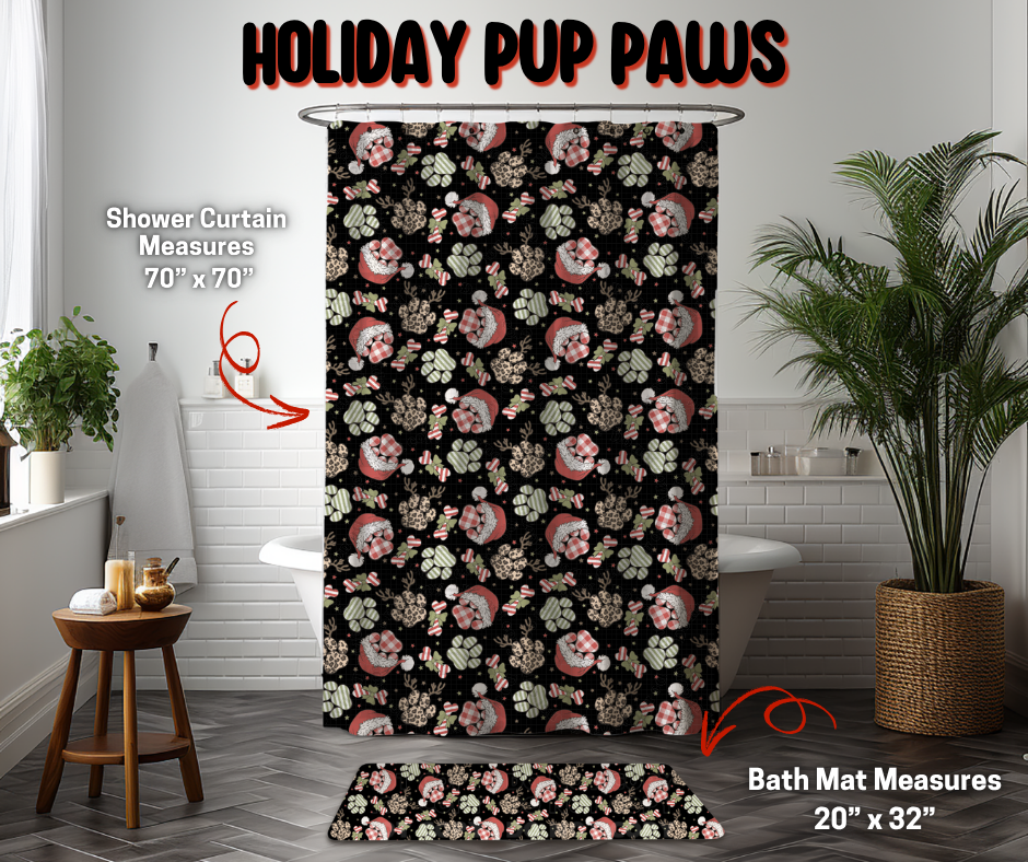 Preorder! Closes 9/8. ETA Dec. Holiday Pup Paws Custom Shower Curtain and/or Bath Mat