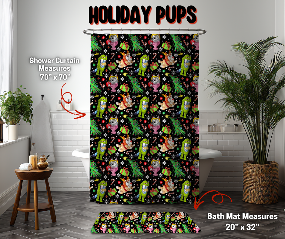 Preorder! Closes 9/8. ETA Dec. Holiday Pups Custom Shower Curtain and/or Bath Mat