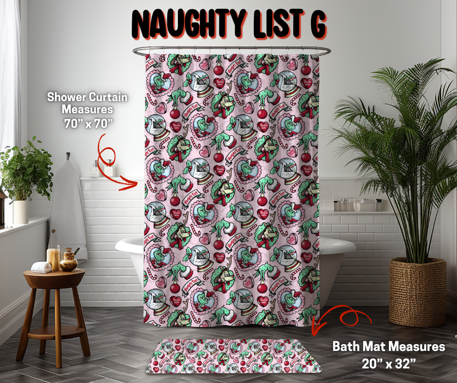 Preorder! Closes 9/8. ETA Dec. Naughty List G Custom Shower Curtain and/or Bath Mat