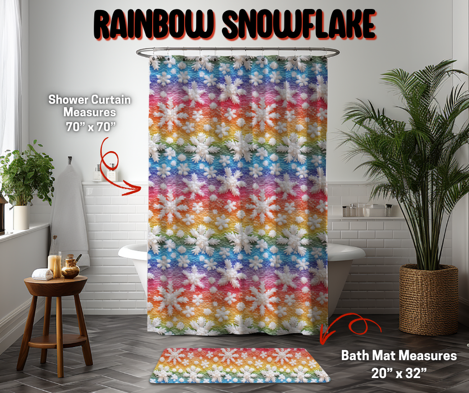 Preorder! Closes 9/8. ETA Dec. Rainbow Snowflake Custom Shower Curtain and/or Bath Mat
