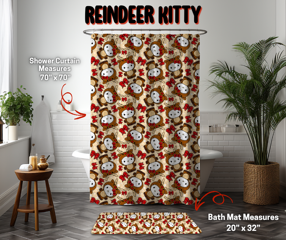 Preorder! Closes 9/8. ETA Dec. Reindeer Kitty Custom Shower Curtain and/or Bath Mat